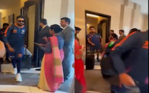 Mohammad Siraj Umran Malik Video: सोशल मीडिया पर एक वीडियो वायरल हो रहा है, जिसमें भारतीय खिलाड़ियों का होटल में एंट्री के समय तिलक लगाकर स्वागत किया जा रहा है, लेकिन इस दौरान मोहम्मद सिराज तिलक लगवाने से मना कर देते हैं. जिसके बाद उमरान मलिक भी ऐसा ही करते हैं.