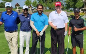 महेंद्र सिंह धोनी के करीबी और बिजनेसमैन हितेश सांघवी ने इंस्टाग्राम पर तस्वीर शेयर करते हुए लिखा कि धोनी, डोनाल्ड ट्रंप और राजीव नैक के साथ गोल्फ… हमारी मेजबानी के लिए धन्यवाद पूर्व राष्ट्रपति महोदय…