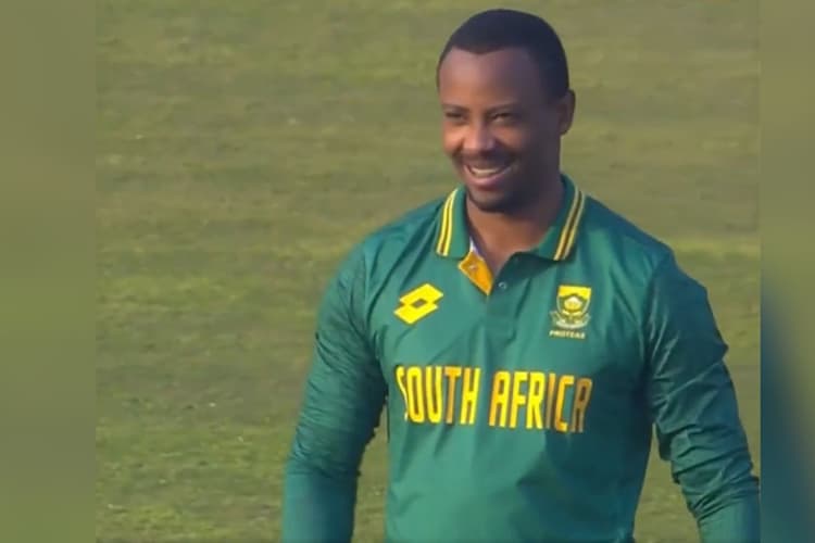 दरअसल सोमवार 10 फरवरी को लाहौर के गद्दाफी स्टेडियम में मैदान पर एक दुर्लभ घटना घटी, जब दक्षिण अफ्रीका के फील्डिंग कोच को मैदान में उतरना पड़ा. मैच के दौरान प्रोटियाज के पास कम खिलाड़ी होने के बाद स्थानापन्न फील्डर के तौर पर फील्डिंग करनी पड़ी. यही वजह थी कि फील्डिंग कोच वांडिले ग्वावु ने क्रिकेट के मैदान पर इंटरनेशनल मैच में फील्डिंग करनी पड़ी. दक्षिण अफ्रीका की राष्ट्रीय क्रिकेट टीम के फील्डिंग कोच वांडिले ग्वावु मैच के 37वें ओवर में फील्डिंग करने उतरे. यह वीडियो इंटरनेट पर वायरल हो रहा है.