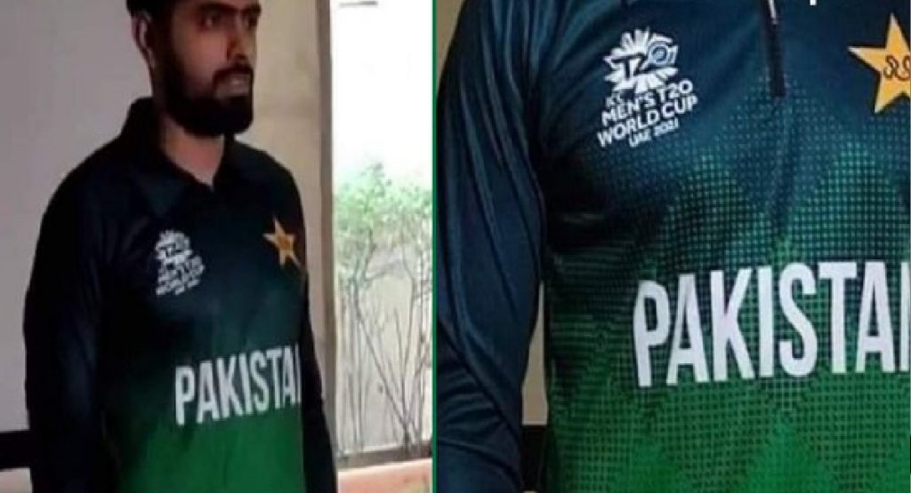 तस्वीर में बाबार आजम जिस जर्सी में नजर आ रहे हैं, उसपर यूएई को मेजबान के रूप में दिखाया गया है. जबकि आईसीसी मेन्स T20 वर्ल्ड कप का मेजबान भारत है और जर्सी पर भारत का नाम लिखा होना चाहिए था. बता दें कि टी-20 विश्व कप मूल रूप से भारत में खेला जाना था, हालांकि, देश में मौजूदा कोविड -19 स्थिति के कारण, इसे यूएई और ओमान में स्थानांतरित कर दिया गया.