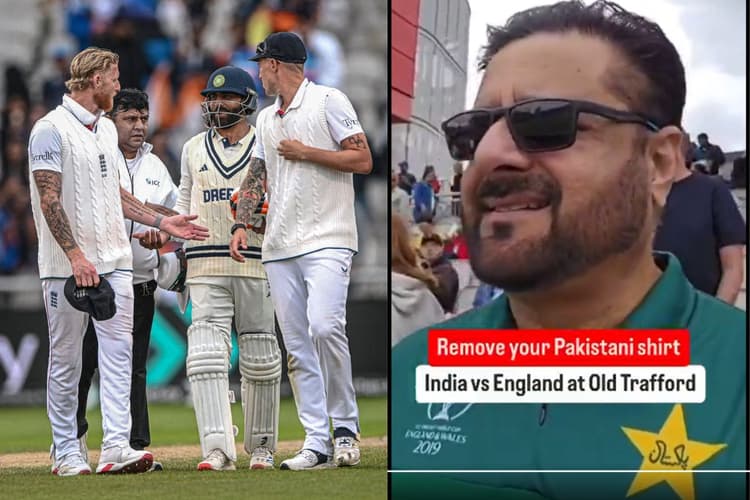 मैनचेस्टर में भारत-इंग्लैंड टेस्ट मैच देखने आए इस फैन ने पाकिस्तान की हरी जर्सी पहनी हुई थी, जिसे स्टेडियम स्टाफ ने यह कहते हुए रोका कि “मैदान में उन टीमों की जर्सी पहनने की अनुमति नहीं है जो उस मुकाबले में हिस्सा नहीं ले रही हैं.” यह घटना स्टैंड्स में हुई जहां उसने खुद ही इसका वीडियो बनाना शुरू कर दिया.