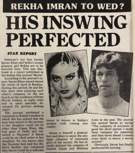 सोशल मीडिया में जो पोस्ट वायरल हो रही है उस रिपोर्ट में दावा किया गया है कि पूर्व पाकिस्तानी कप्तान ने बॉलीवुड दिवा रेखा से शादी करने वाले थें. रिपोर्ट में यह भी लिखा गया है कि रेखा की माँ अपनी बेटी के इस रिश्ते से काफी खुश थी. इसी रिपोर्ट में यह भी दावा किया गया है कि इमरान ने मुंबई में एक महीने के लिए अभिनेत्री के साथ क्वालिटी टाइम बिताया और शहर के कई जहगो पर दोनों अक्सर एक साथ घुमते हुए नजर भी आते थें.