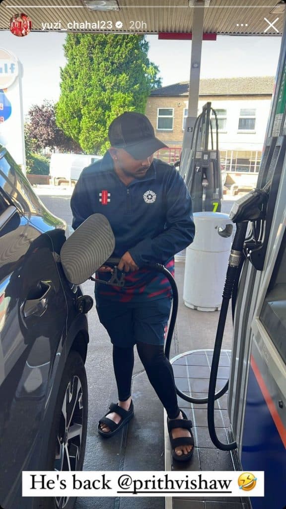Prithvi Shaw: भारतीय टीम के स्टार स्पिन गेंदबाज युजवेंद्र चहल हर वक्त अपने सोशल मीडिया पर एक्टिव रहते हैं. हाल ही में चहल ने चौका देने वाली इंस्टाग्राम स्टोरी सभी के साथ साझा की. स्टोरी में भारतीय टीम के युवा बल्लेबाज पृथ्वी शॉ पेट्रोल पंप में पेट्रोल भरते हुए नजर आ रहे हैं.