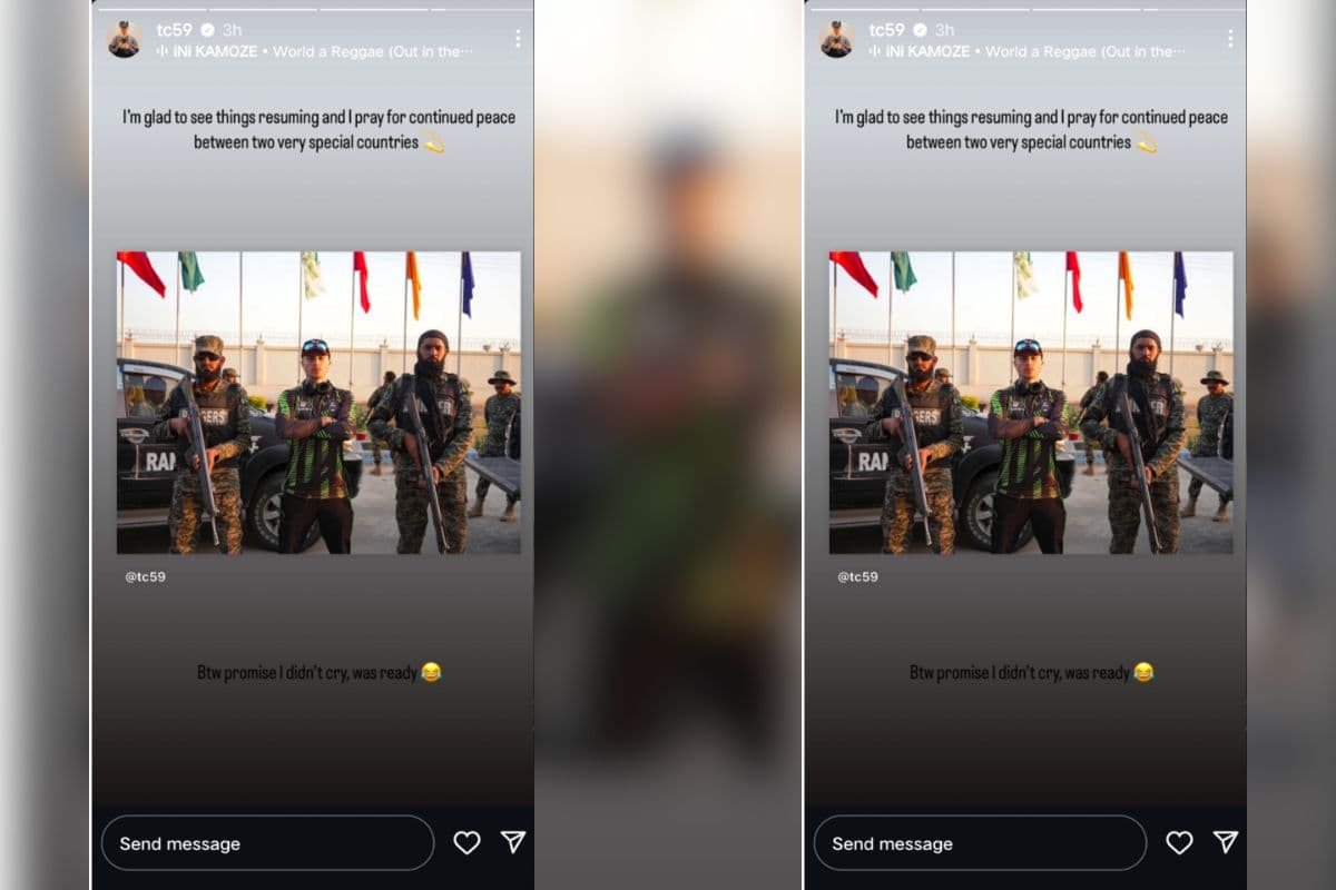 टॉम करन ने पहली बार इस मुद्दे पर 18 मई को इंस्टाग्राम स्टोरी के जरिए हल्के-फुल्के अंदाज में प्रतिक्रिया दी. उन्होंने पाकिस्तानी सेना के साथ अपनी एक फोटो शेयर करते हुए लिखा, “अच्छा लग रहा है कि सब कुछ फिर से शुरू हो गया है, और मैं दोनों बेहद खास देशों के बीच लगातार शांति की प्रार्थना करता हूं. वैसे वादा करता हूं, मैं नहीं रोया था, पूरी तरह तैयार था.”