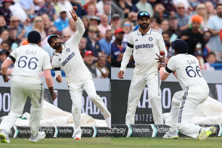 IND vs ENG Ravindra Jadeja and Sai Sudharsan combined catch: भारतीय टीम ने इंग्लैंड के खिलाफ लीड्स में खेले जा रहे पहले टेस्ट मैच में भारतीय बल्लेबाजों ने शानदार खेल दिखाया. लेकिन भारतीय फील्डर्स का प्रदर्शन बेहद निराशाजनक रहा. टीम इंडिया के अनुभवी और युवा खिलाड़ियों ने कई कैच टपकाए. रवींद्र जडेजा और यशस्वी जायसवाल ने ऐसे खिलाड़ियों के कैच गिराए, जिन्होंने इंग्लैंड के लिए बड़ी पारी खेली, जिसकी बदौलत इंग्लिश टीम ने भारत के 471 रन के जवाब पहली पारी में 465 रन बना लिए. हालांकि स्टार भारतीय ऑलराउंडर रवींद्र जडेजा और डेब्यू कर रहे साई सुदर्शन ने रविवार, 22 जून को जुगलबंदी करते हुए एक शानदार कैच भी पकड़ा. गजब का तालमेल दिखाते हुए डीप में एक रिले कैच के जरिए अच्छी लय में दिख रहे जैमी स्मिथ को 40 रन पर आउट किया.
