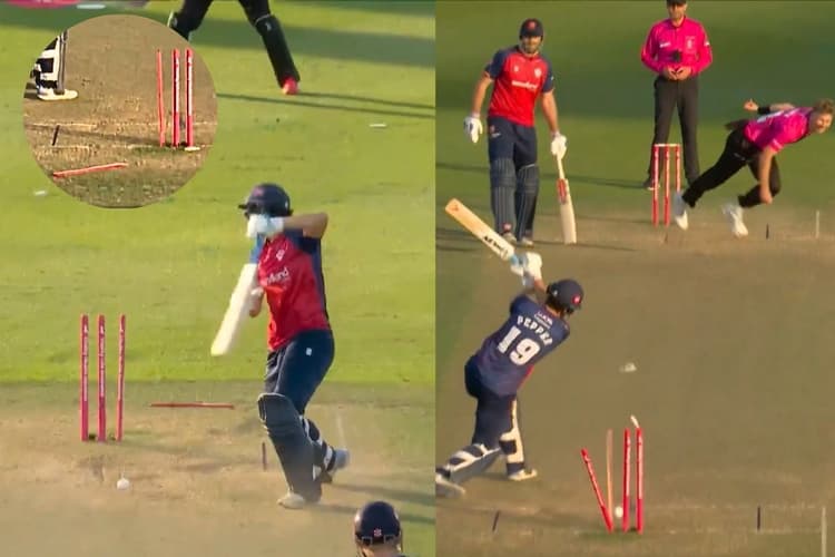 Riley Meredith ripped a stump clean in half Vitality Blast: गेंदबाज का असली मकसद विकेट लेना होता है और इसमें कोई हैरानी की बात नहीं है. मगर जब कोई गेंदबाज अपनी कला से बल्लेबाज को पूरी तरह चकमा देकर स्टंप उड़ा देता है, तो वही पल उसकी उसकी काबिलियत और सारी खूबी इसी में दिखेगी कि उसने किस खूबसूरती से बॉल पर हाथ फेरा और गेंद डंडा उड़ा दे. बोल्ड करना वो एक एहसास होता है, जिसमें गेंदबाज को वैसी संतुष्टि मिलती है, जो शायद बल्लेबाज को छक्का मारकर भी न मिले. लेकिन 8 जुलाई को क्रिकेट के मैदान पर ऐसा नजारा देखने को मिला, जो यकीन से परे था. एक गेंदबाज ने ऐसी बाॉल डाली कि स्टंप्स के टुकड़े नहीं बल्कि ऐसा लगा कि उसे दो हिस्सों में लंबाई में फाड़ा गया हो.