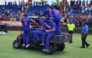 वेस्टइंडीज के खिलाफ टी-20 आई ने प्रशंसकों को कई यादगार पल दिये और ऐसा ही एक क्षण था जब कप्तान रोहित शर्मा को श्रृंखला जीतने के बाद स्टेडियम में गोल्फ कार्ट की सवारी करते देखा गया. एक वायरल वीडियो में, रोहित शर्मा को फ्लोरिडा के लॉडरहिल क्रिकेट ग्राउंड के परिसर में गोल्फ कार्ट चलाते हुए देखा गया. जिसमें टीम के अन्य साथी दिनेश कार्तिक, अक्षर पटेल, ऋषभ पंत, रवि बिश्नोई सहित अन्य लोगों भी भी सवार थे.