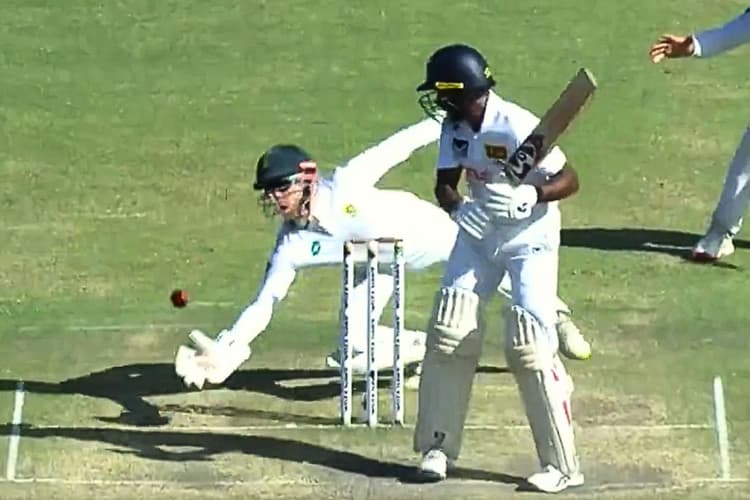 ग्केबरहा में खेले जा रहे दूसरे टेस्ट के दौरान दूसरी पारी में बल्लेबाजी कर रहे कमिंदु मेंडिस केशव महाराज की गेंद पर रक्षात्मक शॉट लगाया लेकिन गेंद घूम गई. चुस्त और चौकन्ना विकेट कीपर काइल वेरेन्ने ने डाइव मारते हुए गेंद को लपक लिया. काइल के कैच करने के बाद कमिंदु मेंडिस भौचक्क रहे गए. उन्हें विश्वास ही नहीं हुआ कि वे कैच आउट हो गए. देखें वीडियो-