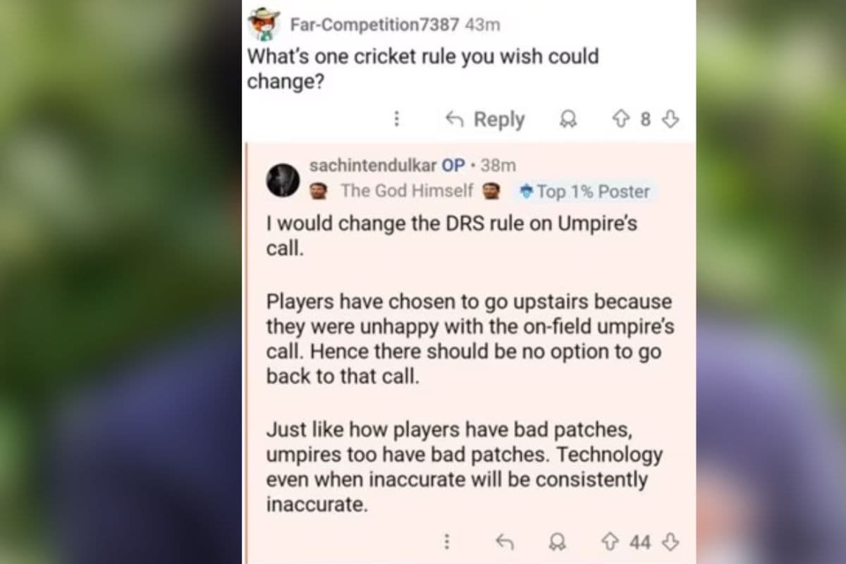 Sachin Tendulkar wants change DRS Rule on Umpire’s call: भारत के दिग्गज खिलाड़ी सचिन तेंदुलकर ने सोमवार को सोशल मीडिया साइट रेडिट पर फैन्स के साथ बातचीत की, जहां उन्होंने लोगों के ढेरों सवालों के जवाब दिए. सचिन से यहां पर एक सवाल पूछा गया कि क्रिकेट का वह कौन सा नियम है जो इस ‘खेल के भगवान’ बदलना चाहेंगे?