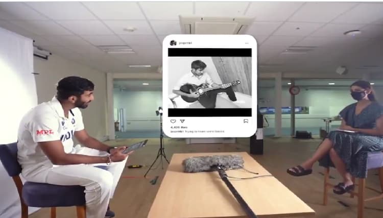 संजना ने गिटार बजाते हुए बुमराह की तसवीर दिखायी और उसके बारे में उनसे पूछा. बुमराह ने बताया वो गिटार बजाना नहीं जानते, हालांकि अब भी वो बजाने की कोशिश कर रहे हैं. उन्होंने बताया गिटार उनकी बहन की है.