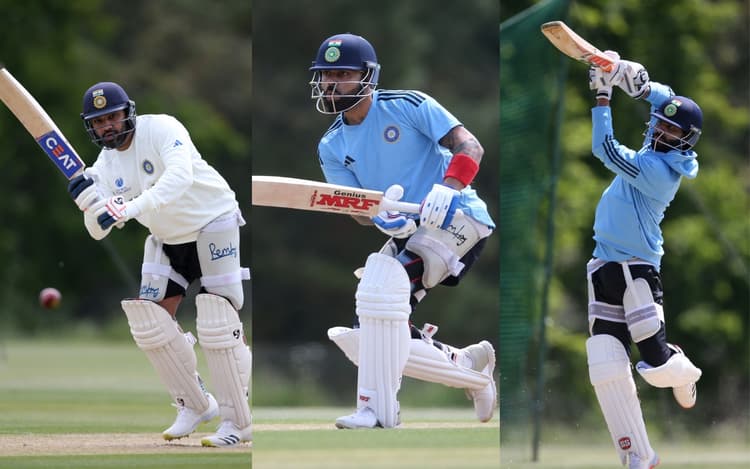 WTC Final 2023: भारत और ऑस्ट्रेलिया के बीच वर्ल्ड टेस्ट चैंपियनशिप फाइनल 2023 मुकाबला 7 जून से लंदन के द ओवल में खेला जाना है. इस खिताबी मुकाबले से पहले टीम इंडिया के खिलाड़ी जमकर प्रैक्टिस कर रहे हैं. इस दौरान रोहित शर्मा, विराट कोहली समेत भारतीय टीम के अन्य खिलाड़ियों को नेट में पसीना बहाते हुए देखा गया.