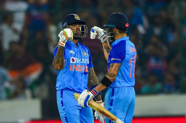 हैदराबाद : सूर्यकुमार यादव और विराट कोहली के अर्धशतक और दोनों के बीच शतकीय साझेदारी से भारत ने रविवार को यहां तीसरे और अंतिम टी20 अंतरराष्ट्रीय क्रिकेट मैच में ऑस्ट्रेलिया को छह विकेट से हराकर सीरीज 2-1 से जीत ली. ऑस्ट्रेलिया के 187 रन के लक्ष्य का पीछा करते हुए भारत ने सूर्यकुमार (36 गेंद में 69 रन, पांच छक्के, पांच चौके) और कोहली (48 गेंद में 63 रन, चार छक्के, तीन चौके) के बीच तीसरे विकेट की 104 रन की साझेदारी की मदद से एक गेंद शेष रहते चार विकेट पर 187 रन बनाकर जीत दर्ज की.