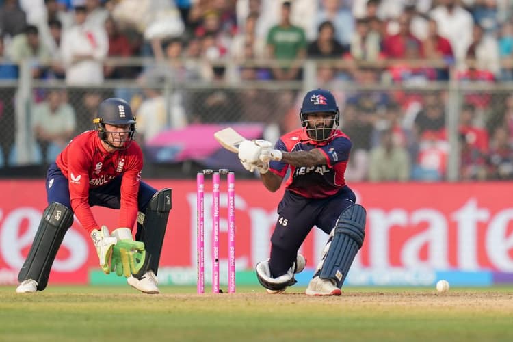 ENG vs NEP: टी20 वर्ल्ड कप 2026 (T20 World Cup 2026) में मुंबई के वानखेड़े स्टेडियम में एक ऐसा मुकाबला देखने को मिला जिसने फैंस की धड़कनें बढ़ा दीं. इंग्लैंड और नेपाल (England vs Nepal) के बीच खेले गए इस रोमांचक मैच में आखिरी गेंद तक सस्पेंस बना रहा, लेकिन अंत में इंग्लैंड की जीत हुई. नेपाल को इस मुकाबले में 4 रन से हार का सामना करना पड़ा. आखिरी ओवरों में लोकेश बम (Lokesh Bam) ने शानदार बल्लेबाजी की.