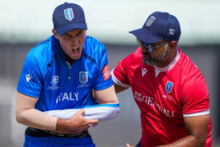 SCO vs ITA: टी20 वर्ल्ड कप 2026 (T20 World Cup 2026) में बड़ा उलटफेर देखने को मिला है. पहली बार वर्ल्ड कप खेल रही इटली की टीम के लिए टूर्नामेंट की शुरुआत बेहद खराब रही. कोलकाता के ईडन गार्डन्स में स्कॉटलैंड के खिलाफ अपने डेब्यू मैच में इटली के कप्तान वेन मैडसन (Wayne Madsen) गंभीर रूप से चोटिल हो गए हैं. टॉस जीतकर पहले गेंदबाजी का फैसला इटली पर भारी पड़ गया. मैच के दौरान ही कप्तान मैडसन को मैदान छोड़कर जाना पड़ा और अब खबर है कि वह इस मैच में दोबारा हिस्सा नहीं ले पाएंगे. 42 साल के अनुभवी खिलाड़ी का इस तरह बाहर होना इटली के लिए किसी बुरे सपने से कम नहीं है.