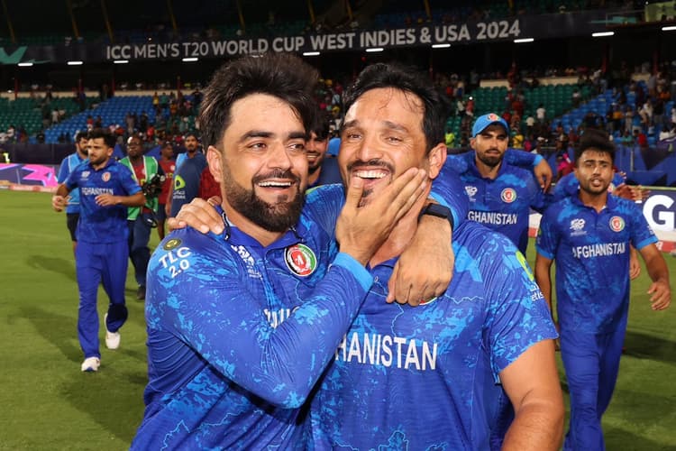 राशिद खान ने कहा कि हमारी टीम सेमीफाइनल में पहुंच सकती है, यह विश्वास हमारे मन में तब आया जब हमने न्यूजीलैंड को हराया. उन्होंने कहा कि हम सेमीफाइनल खेल रहे हैं इस अहसास को बयां करने के लिए मेरे पास शब्द नहीं हैं. राशिद खान ने कहा कि हमें सेमीफाइनल तक पहुंचाने में जिस व्यक्ति का बड़ा योगदान है, वे है ब्रायन लारा. ब्रायन लारा ने हमने जो उम्मीद लगाई थी हमने उसे पूरा किया है. राशिद खान ने कहा कि हमने ब्रायन लारा को कहा था कि हम आपको निराश नहीं करेंगे. उन्होंने कहा कि हमने यह सोचा था कि इस विकेट पर 130-35 रन काफी होंगे, लेकिन हम कुछ रन पीछे रह गए. हम 115 रन बना सके और यह कहा जाए कि 15-20 रन पीछे रह गए, तो गलत नहीं होगा. हमने यह तय किया था कि हमें 10 के 10 विकेट गिराने होंगे, तब ही सेमीफाइनल का रास्ता साफ होगा और हमने यह कर दिखाया. गुलाबदीन को थोड़ा क्रैम्प था, वे परेशान थे लेकिन नवीन उल हक ने बेहतरीन गेंदबाजी की. पूरी टीम ने शानदार प्रदर्शन किया जिसकी वजह से हम जीत सके. पूरे देश में खुशी है. सभी गौरवान्वित हैं. हमें खुश होने का मौका मिला है. अभी हम इस तरह के गौरवशाली पल को जीना चाहते हैं.
