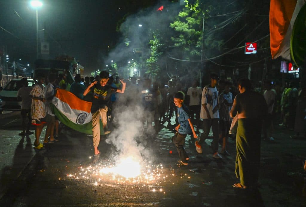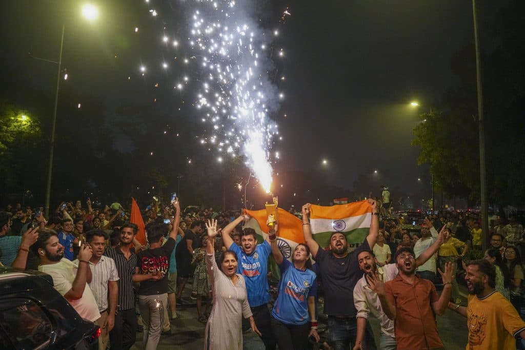 मुंबई में हवाई अड्डे पर क्रिकेट फैंस ढोल की थाप पर नाचते नजर आए. सड़कों पर कई लोग गाड़ियों के ऊपर चढ़ गए. वहीं कोलकाता में क्रिकेट फैंस ने सड़कों पर पटाखे जलाए. बेंगलुरु में ‘टीम इंडिया’ की तरह जर्सी पहने फैंस पब और खाने-पीने की दुकानों के बाहर नाचते दिखे. सोशल मीडिया पर बड़ी संख्या से लोगों ने बधाई मैसेज और जश्न की तस्वीरें के साथ वीडियो शेयर किए.