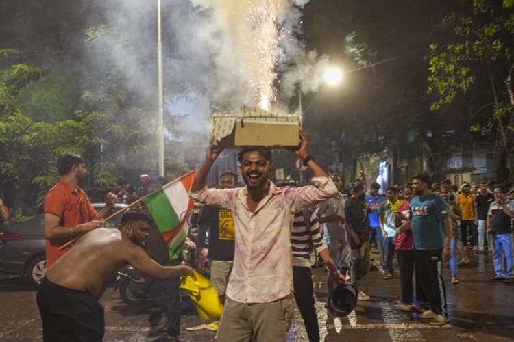 मुंबई में हवाई अड्डे पर क्रिकेट फैंस ढोल की थाप पर नाचते नजर आए. सड़कों पर कई लोग गाड़ियों के ऊपर चढ़ गए. वहीं कोलकाता में क्रिकेट फैंस ने सड़कों पर पटाखे जलाए. बेंगलुरु में ‘टीम इंडिया’ की तरह जर्सी पहने फैंस पब और खाने-पीने की दुकानों के बाहर नाचते दिखे. सोशल मीडिया पर बड़ी संख्या से लोगों ने बधाई मैसेज और जश्न की तस्वीरें के साथ वीडियो शेयर किए.