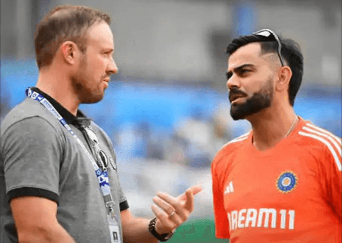 T20 World Cup 2024: एबी डिविलियर्स ने मध्य ओवरों में कोहली की ताकत का हवाला देते हुए भारत से विराट कोहली को ओपनिंग के बजाय नंबर 3 पर बल्लेबाजी कराने का अनुरोध किया.