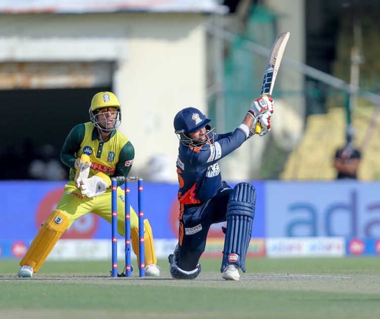 पहले बल्लेबाजी करने के उतरी काशी रुद्रास की टीम का पावरप्ले काफी चुनौतीपूर्ण रहा. काशी ने पावरप्ले में अपना पहला विकेट प्रियांशु पाण्डेय(2) को भुवनेश्वर कुमार की गेंद में खो दिया.जबकि करण शर्मा (105*) और शिवम बंसल (56) सतर्क थे, नमन तिवारी के 15 रन के ओवर ने काशी को पावरप्ले 36/1 पर समाप्त करने में मदद की. दोनों बल्लेबाजों ने लगातार बाउंड्री के अभाव में बीच में कड़ी मेहनत की और 11.1 ओवर में 50 रन की साझेदारी पूरी की. करण शर्मा ने प्रतियोगिता में अपना पांचवां अर्धशतक दर्ज किया, 46 गेंदों में चार चौके और दो छक्के शामिल थे. 14 ओवर की समाप्ति पर काशी रुद्र का स्कोर 90/1 था. अगला ओवर गति में बदलाव का संकेत था, जिसमें काशी रुद्र ने 17 रन बनाए. जबकि रनों का प्रवाह जारी रहा, शिवम बंसल (56) 39 गेंदों में अपना अर्धशतक पूरा करने वाले अगले खिलाड़ी थे, जो 17वें ओवर में भुवनेश्वर कुमार का शिकार बने.