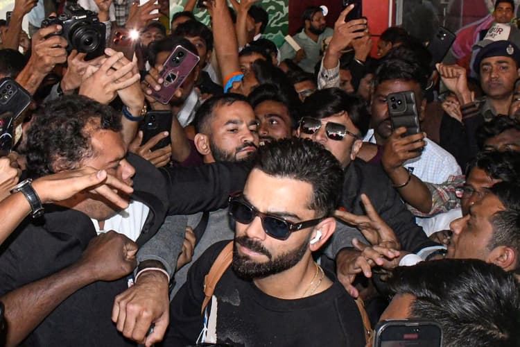 जैसे ही विराट कोहली हवाई अड्डे से बाहर निकले, टर्मिनल में जोर-जोर से ‘कोहली, कोहली’ के नारे गूंजने लगे. मोबाइल फोन लहराते हुए और सुरक्षाकर्मियों के रास्ता साफ करने के प्रयासों के बीच, इस स्टार बल्लेबाज ने टीम की गाड़ी की ओर बढ़ने से पहले भीड़ का अभिवादन किया. ये दृश्य उनके अंतरराष्ट्रीय करियर के एक दशक से अधिक समय बाद भी उनके अटूट प्रभाव को दिखाता है. कोहली न्यूजीलैंड सीरीज से पहले शानदार फॉर्म में हैं. उन्होंने भारत के ऑस्ट्रेलिया दौरे के आखिरी वनडे में अर्धशतक बनाया और पिछले साल के अंत में दक्षिण अफ्रीका के खिलाफ घरेलू वनडे सीरीज में लगातार दो शतक और एक अर्धशतक लगाया. Viral Video Virat Kohli gets mobbed by fans in Vadodara