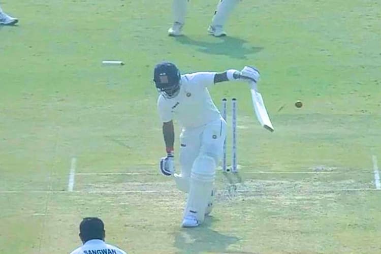 अपने घरेलू दर्शकों की तालियों की गड़गड़ाहट और गड़गड़ाहट के बीच कोहली की शुरुआत अच्छी नहीं रही और रेलवे के तेज गेंदबाज हिमांशु सांगवान ने उनका ऑफ स्टंप गिरा दिया. अच्छी लेंथ की फुलर साइड पर आने वाली गेंद पर आगे बढ़ते हुए कोहली ने लाइन के पार एक असामान्य स्वाइप करने का प्रयास किया. गेंद कोहली के ब्लेड से फिसलकर ऑफ स्टंप पर जा लगी. विराट कोहली 15 गेंद पर केवल 6 रन बनाकर आउट हो गए.