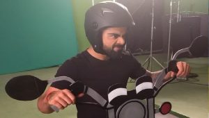 दरअसल सोशल मीडिया पर एक्टिव रहने वाले विराट कोहली ने इंस्टाग्राम और ट्विटर पर अपनी एक फनी तसवीर शेयर की है. जिसमें कोहली नकली बाइक पर सवार दिख रहे हैं. कोहली हेलमेट भी पहने नजर आ रहे हैं और चेहरे का एक्सप्रेशन बच्चों जैसा ही बना रखा है.