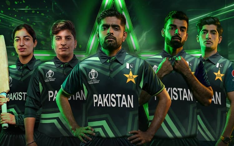 पाकिस्तान क्रिकेट टीम ने एशिया कप और विश्व कप 2023 से पहले अपनी नई जर्सी का खुलासा किया. पाकिस्तान क्रिकेट बोर्ड (पीसीबी) के आधिकारिक सोशल मीडिया हैंडल ने इंस्टाग्राम पर नई जर्सी का एक वीडियो शेयर किया. वीडियो के अंत में पाकिस्तान पुरुष क्रिकेट टीम के कप्तान बाबर आजम नई जर्सी में टीम के अन्य साथी शादाब खान और नसीम शाह के साथ खड़े हैं. पाकिस्तान महिला क्रिकेट टीम की खिलाड़ी निदा डार और आलिया रियाज को भी नई जर्सी पहने हुए उनके साथ खड़े देखा जा सकता है.