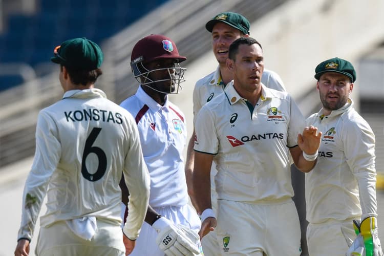 ऑस्ट्रेलिया ने टॉस जीतकर पहले बल्लेबाजी करते हुए 225 रन बनाए. इस पारी में कोई भी बल्लेबाज अर्धशतक नहीं बना सका. स्टीव स्मिथ ने सर्वाधिक 48 रन और कैमरून ग्रीन ने 46 रन की पारी खेली. वेस्टइंडीज की ओर से शमार जोसेफ सबसे सफल गेंदबाज रहे, जिन्होंने 4 विकेट चटकाए. जवाब में वेस्टइंडीज की पहली पारी 143 रनों पर सिमट गई. उनकी ओर से कोई भी बल्लेबाज 40 रन तक नहीं पहुंच सका. ऑस्ट्रेलिया के लिए बोलैंड ने तीन विकेट लिए जबकि कप्तान पैट कमिंस और जोश हेजलवुड ने दो-दो विकेट झटके. इस तरह कंगारुओं को पहली पारी में 82 रनों की अहम बढ़त मिली.