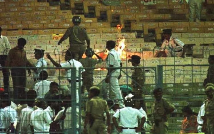 भारतीय टीम को हार की ओर जाता हुए देख भारतीय फैंस को गुस्सा आ गया. इस गुस्से में फैंस ने स्टेडियम में बवाल करना शुरू कर दिया. यह मैच कोलकाता के ईडन गार्डंस में खेला जा रहा था. फैंस ने मैदान पर बोतले फेंकनी शुरू कीं. इसके बाद उन्होंने स्टेडियम की कुर्सियों में आग लगा दी.