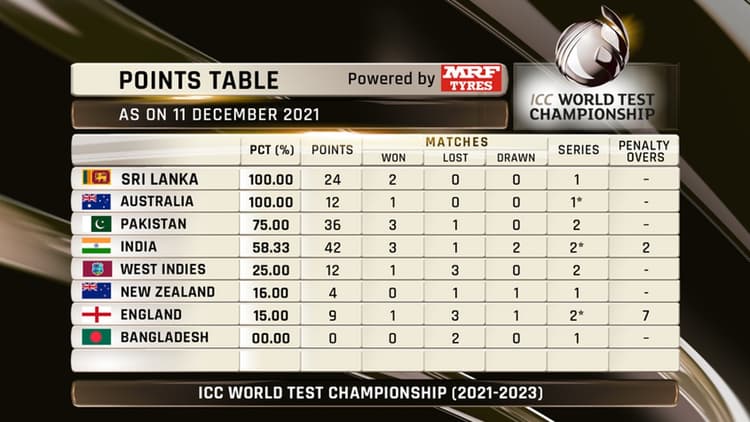 अंकों की बात करें तो भारत के पास सबसे ज्यादा 42 अंक हैं, लेकिन वर्ल्ड टेस्ट चैंपियनशिप में क्वालीफाइ करने के लिए अंक प्रतिशत के आधार पर आकलन किया जाता है. भारत का अंक प्रतिशत 58.33 है. भारत ने तीन टेस्ट मैचों में जीत दर्ज की है, जबकि एक टेस्ट मैच में टीम को हार का सामना करना पड़ा है. वहीं भारत ने दो मैचों में ड्रॉ खेला है. पिछली बार की चैंपियन न्यूजीलैंड 16 अंक प्रतिशत के साथ छठे नंबर पर है.