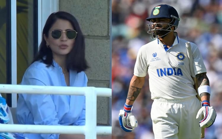 लंदन के ओवल में खेले गए इस मैच के पांचवें दिन विराट कोहली भारत की दूसरी पारी में 49 रन बनाकर पवेलियन लौटे. उन्होंने 78 गेंदों का सामना करते हुए 7 चौके लगाए. कोहली के आउट होने के बाद उनकी पत्नी अनुष्का शर्मा उदास हो गईं. उनकी कई तस्वीरें ट्विटर पर शेयर की गई हैं. लेकिन उनकी तस्वीरों को शेयर करने के साथ कुछ सोशल मीडिया यूजर्स ने उन्हें ट्रोल भी किया है. अनुष्का को लेकर कई तरह के रिएक्शन देखने को मिले हैं. कुछ लोग अनुष्का को कोहली और टीम इंडिया के लिए पनौती बता रहे हैं तो कुछ उन्हें स्टेडियम न आने की नसीहत दे रहे हैं.