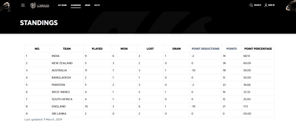 WTC Points Table: टॉप पर मजबूत हुआ भारत
