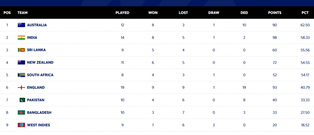 WTC Points Table: हार से भारत को हुआ बड़ा नुकसान, छिन गया नंबर वन का ताज