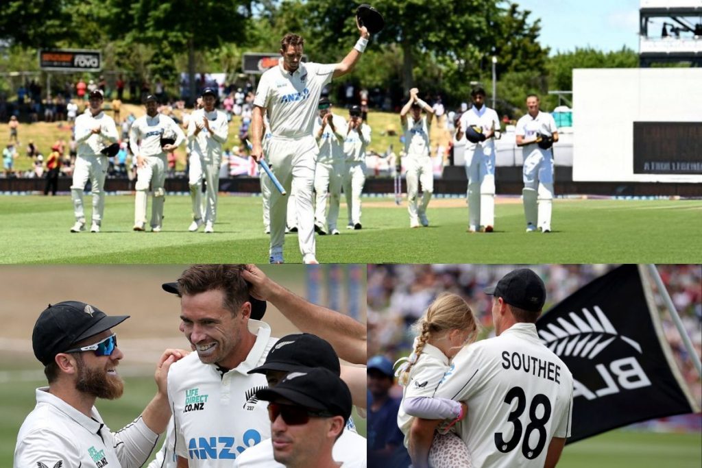 Tim Southee Last Match: इंग्लैंड और न्यूजीलैंड (ENG vs NZ) के बीच तीसरे टेस्ट मैच में कीवी टीम ने जीत दर्ज करते हुए अपने स्टार गेंदबाज टिम साउदी (Tim Southee) को एक शानदार विदाई दी.