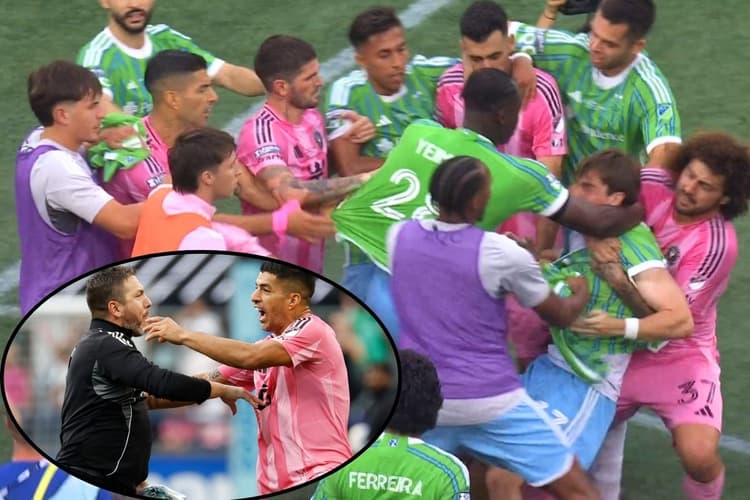 Inter Miami vs Seattle Sounders clash: फुटबॉल की कंट्रोवर्सी किसी ओर खेल से सबसे ज्यादा होती हैं. 22 खिलाड़ी, जीतने की प्रबल इच्छा, कठिन प्रतियोगिता इस खेल में कुछ भी करवा सकती है. सोमवार को लीग्स कप फाइनल में सिएटल साउंडर्स ने लियोनेल मेसी की इंटर मियामी को 3-0 से हराकर बड़ा उलटफेर कर दिया. इंटर मियामी में लियोनेल मेसी, लुइस सुआरेज, जोर्डी अल्बा और सर्जियो बुस्क्वेट्स जैसे स्टार खिलाड़ी शामिल हैं. इनको जीत का प्रबल दावेदार माना जा रहा था, लेकिन सिएटल ने शानदार प्रदर्शन कर सभी को चौंका दिया. इसके बाद हालात बिगड़ गए और दोनों टीमों के खिलाड़ी मैदान पर भिड़ गए. खिलाड़ियों के बीच ऐसी गजब की लड़ाई हुई कि जो बचाने गया, वही भिड़ गया. इसी दौरान लुइस सुआरेज को विरोधी टीम के कोचिंग स्टाफ पर थूकते हुए देखा गया. यह आदर्श खेल कहीं से भी नहीं था और सुआरेज की हरकत इससे भी बुरी रही.