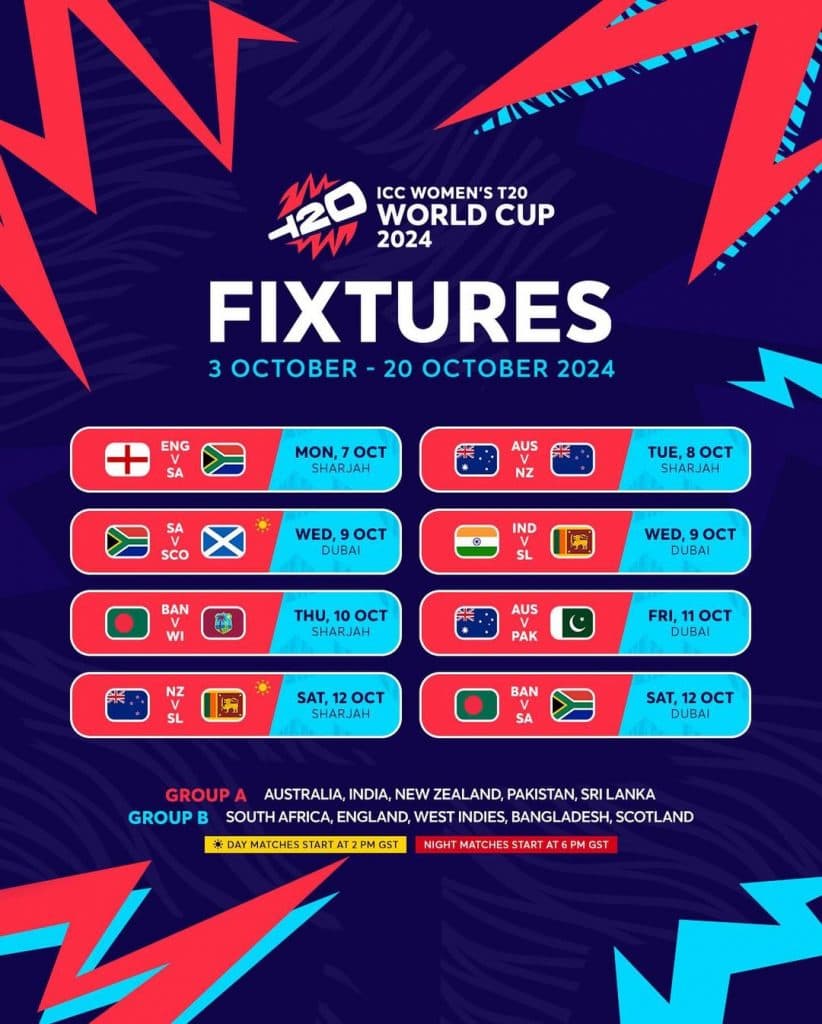 | 5 अक्टूबर | बांग्लादेश बनाम इंग्लैंड | शारजाह | 3:30 pm |