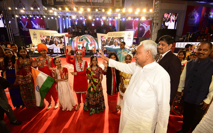 Sepak Takraw World Cup 2025: पटना स्थित पाटलिपुत्र स्पोर्ट्स कॉम्प्लेक्स में गुरुवार को सेपक टाकरा वर्ल्ड कप का रंगारंग शुभारंभ हुआ. इस वर्ल्ड का गवाह बनने के लिए हजारों की संख्या में लोग स्टेडियम में मौजूद रहे. मैच के दौरान खिलाड़ियों और दर्शकों में काफी जोश रहा. बिहार में पहली बार हो रहे इस भव्य आयोजन में 19 देशों की टीम कप पर कब्जा करने लिए पहुंची है. भारत की पुरुष और महिला टीम ने वर्ल्ड कप में जीत से आगाज किया. क्वाड इवेंट में भारत की पुरुष टीम ने न्यूजीलैंड पर आसान जीत दर्ज की. भारत के खिलाड़ियों ने शुरू से ही मैच पर अपना दबदबा बना लिया. भारत की टीम ने पहला सेट 15-7 से जीता. दूसरा सेट 15-10 से जीत कर मैच को अपने नाम कर लिया. वहीं, महिला वर्ग में भारत ने ईरान को सीधे सेटों हरा कर पूरे अंक हासिल किये. भारत की खिलाड़ियों ने पहला सेट 15-9 से और दूसरा सेट 15-7 से जीता. भारत ने नेपाल को दो सेटों में 15-9 और 15-9 से हराया.