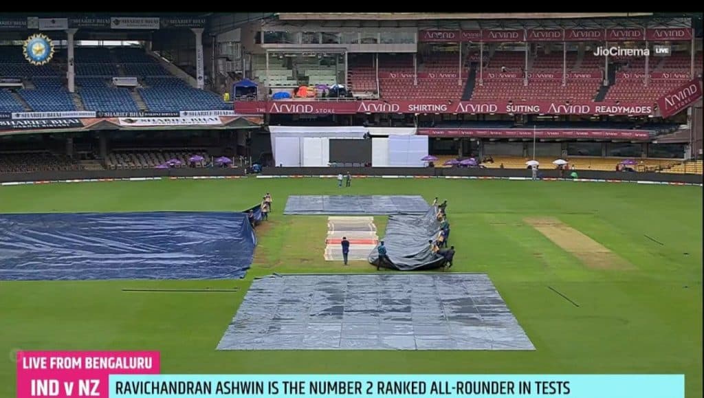 INDvsNZ: बंगलुरू के चिन्नास्वामी स्टेडियम में भारत और न्यूजीलैंड के बीच होने वाली दो टेस्ट मैचों की सीरीज का पहला मैच बारिश की वजह से रुका हुआ है. अभी तक टॉस भी नहीं हो पाया है. बारिश के लंच तक रुकने की संभावना है. मैच के अंपायर्स माइकल गफ और पॉल रीफेल बारिश रुकने पर पिच का मुआयना करने के बाद खेल को शुरू कर सकते हैं.