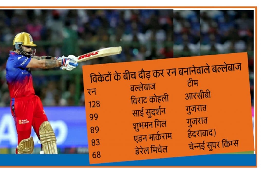 IPL 2024 : एक-एक बूंद से भी रनों का तालाब बनता है. IPL 2024 में कोहली इस कहावत को खूब चरितार्थ कर रहे हैं. इस बार आइपीएल में बुधवार तक 24 मैच खेले जा चुके हैं. आंकड़ों पर गौर करें, तो विस्फोटक बल्लेबाज विराट कोहली विकेटों के बीच दौड़ कर रन बनाने में शीर्ष पर चल रहे हैं. आइपीएल की पांच पारियों में 316 रन बना कर ऑरेंज कैप की दौड़ में शीर्ष पर चल रहे रॉयल चैलेंजर्स बेंगलुरु के विराट कोहली ने 128 रन विकेटों के बीच दौड़ कर बनाये हैं. इस सूची में दूसरे स्थान पर गुजरात टाइटंस के साई सुदर्शन हैं. 191 में से 99 रन इन्होंने दौड़ कर बनाये हैं. शुभमन गिल भी एक-दो रन लेने में आगे दिख रहे हैं.