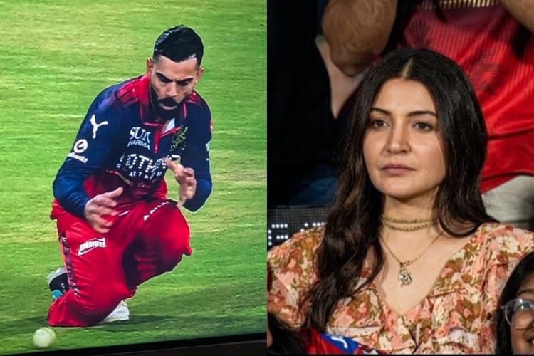 RCB vs SRH IPL 2026: मैदान पर विराट कोहली की फील्डिंग के तो सब दीवाने हैं, लेकिन आईपीएल 2026 के पहले ही मैच में किंग कोहली से एक ऐसी चूक हो गई जिसे देख हर कोई दंग रह गया. सनराइजर्स हैदराबाद के खिलाफ 18वें ओवर में विराट ने एक बहुत ही आसान कैच टपका दिया. गेंद उनके हाथों से फिसलकर जांघ पर जा लगी और खुद विराट भी अपनी इस गलती पर काफी हैरान दिखे. लेकिन इस पूरे नजारे में सबसे मजेदार बात थी स्टैंड्स में बैठी अनुष्का शर्मा का रिएक्शन. पति का ये आसान कैच छूटते ही अनुष्का अपनी हंसी नहीं रोक पाईं. उनका ये हंसते हुए रिएक्शन अब इंटरनेट पर जमकर वायरल हो रहा है और फैंस इसे काफी पसंद कर रहे हैं.