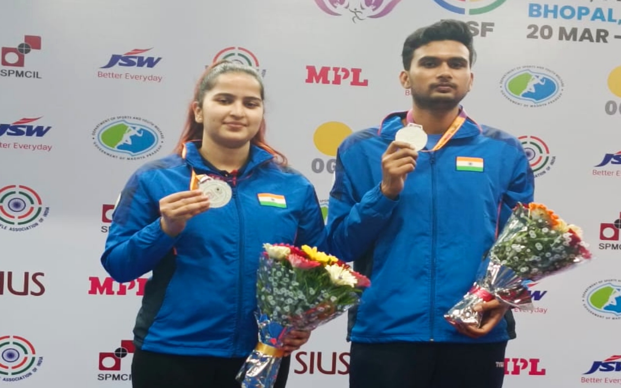 ISSF World Cup Shooting Championship: भारत ने गुरुवार को आईएसएसएफ पिस्टल व राइफल विश्व कप में एक रजत और एक कांस्य पदक जीता. इससे भारत के टूर्नामेंट में पदकों की संख्या चार हो गयी है, जिसमें एक स्वर्ण, एक रजत और दो कांस्य पदक हैं. भारत के लिए वरूण तोमर और रिदम सांगवान की एयर पिस्टल मिश्रित टीम जोड़ी ने दूसरा स्थान, जबकि रूद्रांक्ष पाटिल और आर नर्मदा नितिन ने एयर राइफल स्पर्धा में तीसरा स्थान प्राप्त किया.