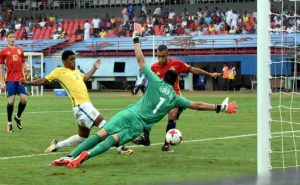 कोच्चि : खिताब के प्रबल दावेदार ब्राजील ने फीफा अंडर 17 विश्व कप के ग्रुप डी के महत्वपूर्ण मुकाबले में स्पेन को 2-1 से हराकर अपने अभियान की शानदार शुरुआत की. दर्शकों से खचाखच भरे स्टेडियम में इस बहुप्रतीक्षित मुकाबले में स्पेन ने शानदार शुरुआत करते हुए पांचवें मिनट में ही ब्राजील के डिफेंडर वेस्ले के आत्मघाती गोल की बदौलत बढ़त हासिल कर ली लेकिन टीम लय बरकरार नहीं रख सकी और उसने ब्राजील को वापसी का मौका दे दिया.