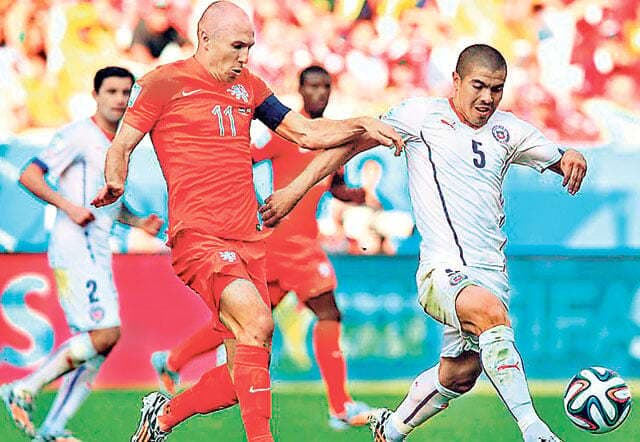 साओ पाउलो में खेले गये मैच में नीदरलैंड और चिली के खिलाड़ियों ने शानदार खेल दिया. मैच के पहले हाफ तक दोनों टीमों की ओर से कोई गोल नहीं हो सका. नीदरलैंड के लिए लेरॉय फेर ने मैच के 77वें मिनट में गोल कर टीम को 1-0 की बढ़त दिला दी. वहीं टीम के लिए दूसरा गोल मेंफिस डिपे ने इंजुरी टाइम में किया.