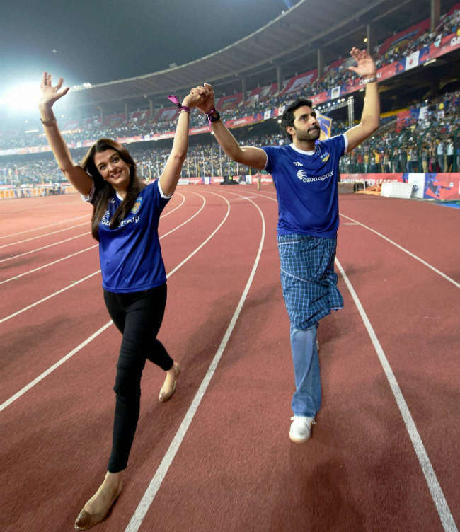 बॉलीवुड की दुनिया से इतर उन्होंने खेल के प्रति जो इंटरेस्ट दिखाया है वह गौरतलब है. अभिषेक ने आइएसएल के मैच में अपनी टीम को प्रमोट करनेका कोई भी मौका नहीं गवाया है. उन्होंने सभी मैचों में मैदान पर उपस्थित होकर टीम का उत्साह बढ़ाया है. मंगलवार को भी कोलकाता और चेन्नइयिन सुपर के बीच हो रहे मुकाबले में अभिषेक ने अपनी पत्नी ऐश्वर्या बच्चन के साथ मैदान पर मौजूद थे. दोनों ने मैच के दौरान मैदान में जम कर मस्ती की. दोनों ने मैदान में लूंगी डांस भी दिखाया. अभिषेक ने तो एक कदम आगे बढ़ते हुए फुटबॉल खेलने का आनंद लिया.