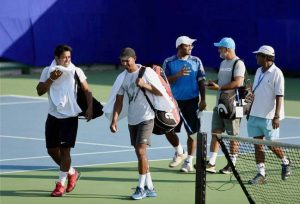 एसडीएटी टेनिस स्टेडियम में भारतीय-दक्षिण अफ्रीकी खिलाड़ियों की जोड़ी को स्पेन के खिलाड़ियों को 6-3 6-3 से हराने में थोड़ी मशक्कत करनी पड़ी.