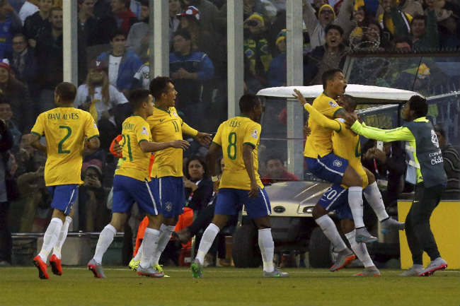 सेंटियागो : निलंबित कप्तान नेमार की गैरमौजूदगी के बावजूद ब्राजील ने वेनेजुएला को 2-1 से हराकर कोपा अमेरिका फुटबॉल टूर्नामेंट के क्वार्टर फाइनल में जगह बनाई. ब्राजील की ओर से पेरिस सेंट जर्मेन के स्ट्राइकर थियागो सिल्वा और बुंदेसलीगा में खेलने वाले स्ट्राइकर रोबर्टो फरमिनो ने गोल दागे जिससे टीम ग्रुप सी में शीर्ष पर रहते हुए अंतिम आठ में जगह बनाने में सफल रही.