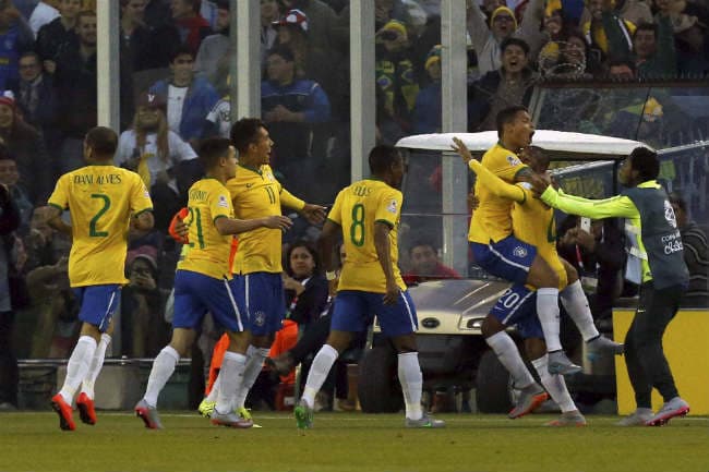 सेंटियागो : निलंबित कप्तान नेमार की गैरमौजूदगी के बावजूद ब्राजील ने वेनेजुएला को 2-1 से हराकर कोपा अमेरिका फुटबॉल टूर्नामेंट के क्वार्टर फाइनल में जगह बनाई. ब्राजील की ओर से पेरिस सेंट जर्मेन के स्ट्राइकर थियागो सिल्वा और बुंदेसलीगा में खेलने वाले स्ट्राइकर रोबर्टो फरमिनो ने गोल दागे जिससे टीम ग्रुप सी में शीर्ष पर रहते हुए अंतिम आठ में जगह बनाने में सफल रही.