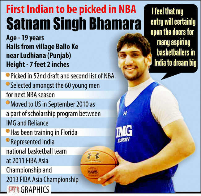 पंजाब के बरनाला जिले के बल्लो के नाम के छोटे से गांव के रहने वाले सात फुट दो इंच लंबे सतनाम आईएमजी रिलायंस के छात्रवृत्ति कार्यक्रम के तहत 2010 में अमेरिका गये थे. उन्नीस वर्षीय सतनाम को डलास मावरिक्स ने अपनी टीम में चुना. इस तरह से उन्होंने अमेरिका की प्रतिष्ठित नेशनल बास्केटबाल एसोसिएशन में शामिल होने वाला पहला भारतीय बनकर इतिहास रचा.