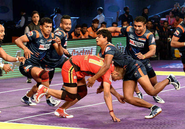 मुंबई : अंतिम पांच मिनट में रोहित कुमार के शानदार प्रदर्शन की बदौलत बेंगलुरु बुल्स ने प्रो कबड्डी लीग के रोमांचक मुकाबले में आज यहां बंगाल वारियर्स को 24-23 से हरा दिया. यह मुकाबला मुख्य रुप से दोनों टीमों के डिफेंस के बीच था जिसमें बेंगलुरु की टीम ने धैर्य बरकरार रखते हुए जीत दर्ज की.