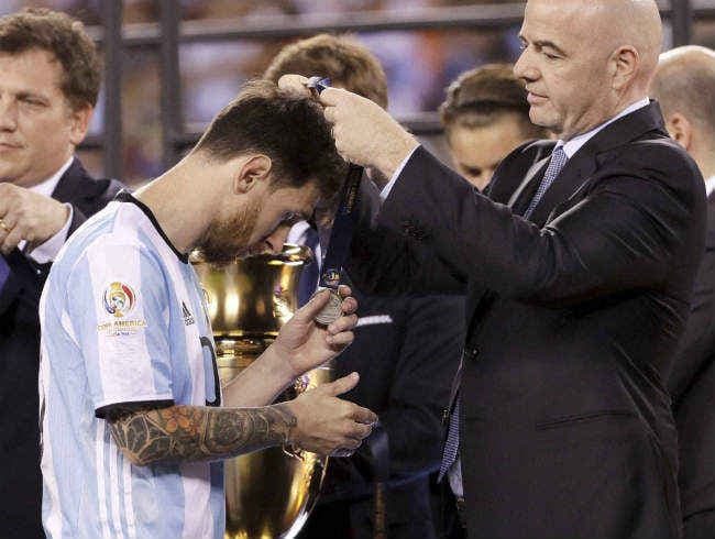मेस्सी ने संवाददाताओं से कहा, ‘‘मेरे लिए राष्ट्रीय टीम का साथ खत्म हो गया है.” उन्होंने कहा, ‘‘मैंने अपना हरसंभव प्रयास किया, मैं चार बार फाइनल में पहुंचा और चैम्पियन नहीं बनने से पीड़ा पहुंचती है.” इस बीच मैनचेस्टर सिटी के अर्जेन्टीना के स्टार सर्जियो एगुएरो ने चेताया कि अन्य खिलाड़ी भी राष्ट्रीय टीम का साथ छोड़ सकते हैं. उन्होंने कहा, ‘‘ड्रेसिंग रुम में हम सभी टूट गए हैं विशेषकर लियो.
